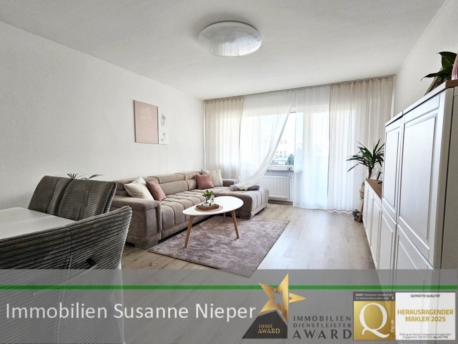 Das Wohnzimmer ist großzügig, verfügt über eine große Fensterfront und den Zugang zu Ihrem großen Balkon. Der Balkon befindet sich auf der Sonnenseite und ist mit einem integrierten Blumenkübel aus Edelstahl ausgestattet. Das Schlafzimmer liegt auf der straßenabgewandten Seite und verfügt über ideale Stellmöglichkeiten auch für große Kleiderschränke. Das Badezimmer präsentiert sich mit großformatigen weißen Hochglanzfliesen, kombiniert mit anthrazit matten Bodenfliesen. Ausgestattet ist das Bad mit wandhängendem WC und eingemauertem Spülkasten, Waschtisch, Spiegelschrank, Handtuchwärmer sowie einer Dusche mit Abtrennung aus Glas. Das Badezimmer verfügt zudem über ein großes Fenster. Die Küche ist rechteckig geschnittenen, beidseitig stellbar und der Fliesenspiegel mit großformatigen Hochglanz Fliesen ausgestattet. Die Bodenbeläge variieren harmonisch zwischen Laminat und Fliesenboden. Die Beheizung erfolgt über eine Gaszentralheizung. Jede Wohnung verfügt über eine eigene Wasseruhr und eine Gegensprechanlage. Zur Wohnung gehört ein eigener Kellerraum, zur allgemeinen Nutzung stehen ein Wasch- und Trockenraum sowie ein Fahrradkeller zur Verfügung. Zur Wohnung gehört ein eigener PKW-Stellplatz vor dem Haus. Ihr Wohndomizil kann ab dem 15.07.2026 bezogen werden.